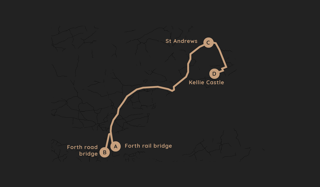Your tour can be completely customised to your preferences, but here is a suggested route to discover the highlights of the Kingdom of Fife.